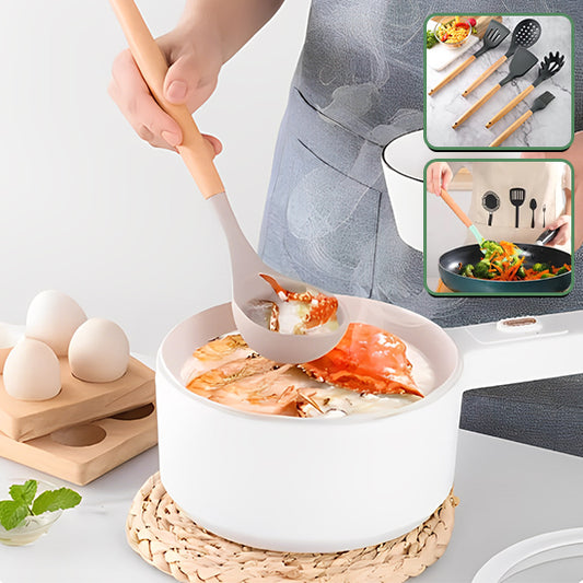 Ensemble Ustensiles de Cuisine en Silicone et Bois